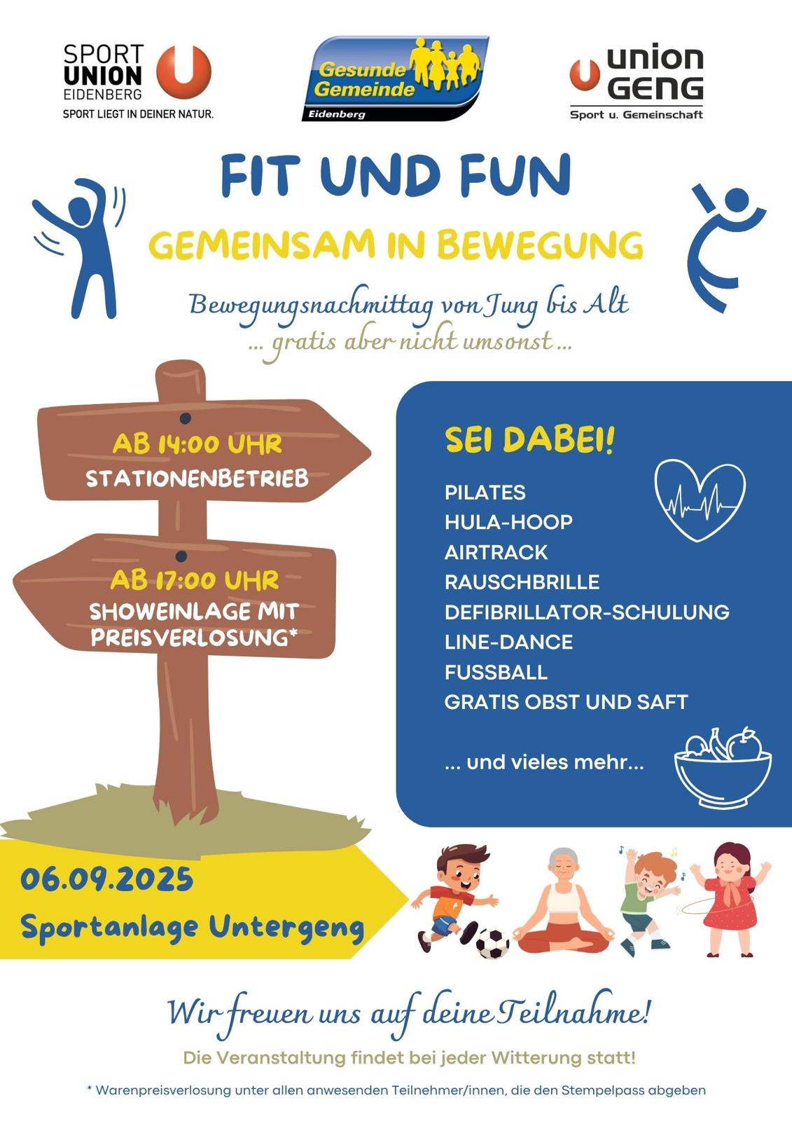 Die Gesunde Gemeinde Eidenberg sowie die Sportvereine Eidenberg und Geng laden herzlich zum Bewegungsnachmittag „Fit und Fun – gemeinsam in Bewegung“ am